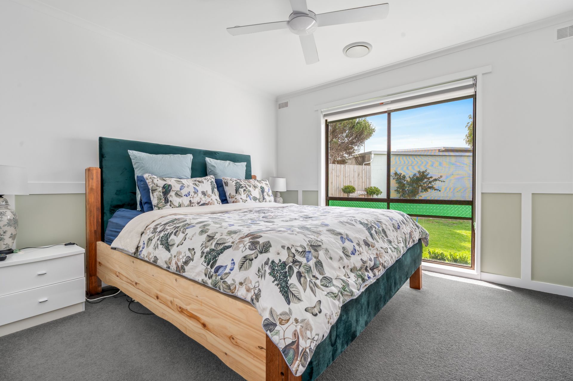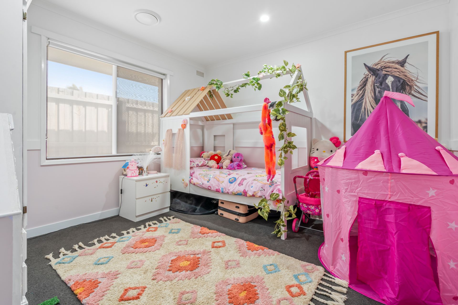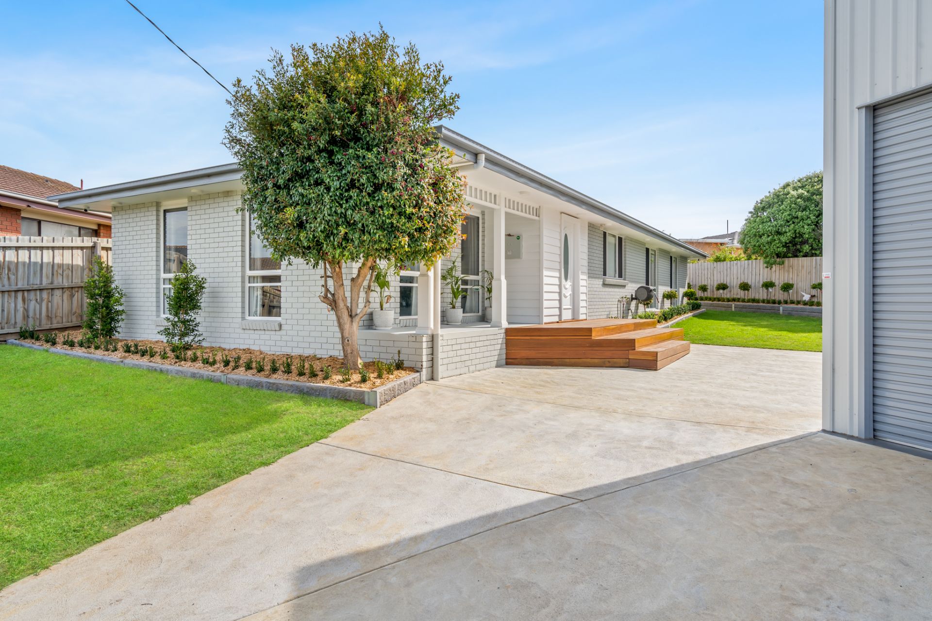 Each of the three bedrooms is light-filled and spacious, with tasteful finishes that continue the home’s elegant theme. The master bedroom offers a serene retreat, complete with a ceiling fan, and a large window overlooking the beautifully landscaped backyard-creating the perfect blend of comfort and style. Two of the bedrooms include built-in robes, adding practical storage without compromising on aesthetics. A stunning main bathroom services the home, with beautiful brass gold fixtures and fittings, a large mirror and ample cabinetry, with a second separate toilet adjacent from the laundry.