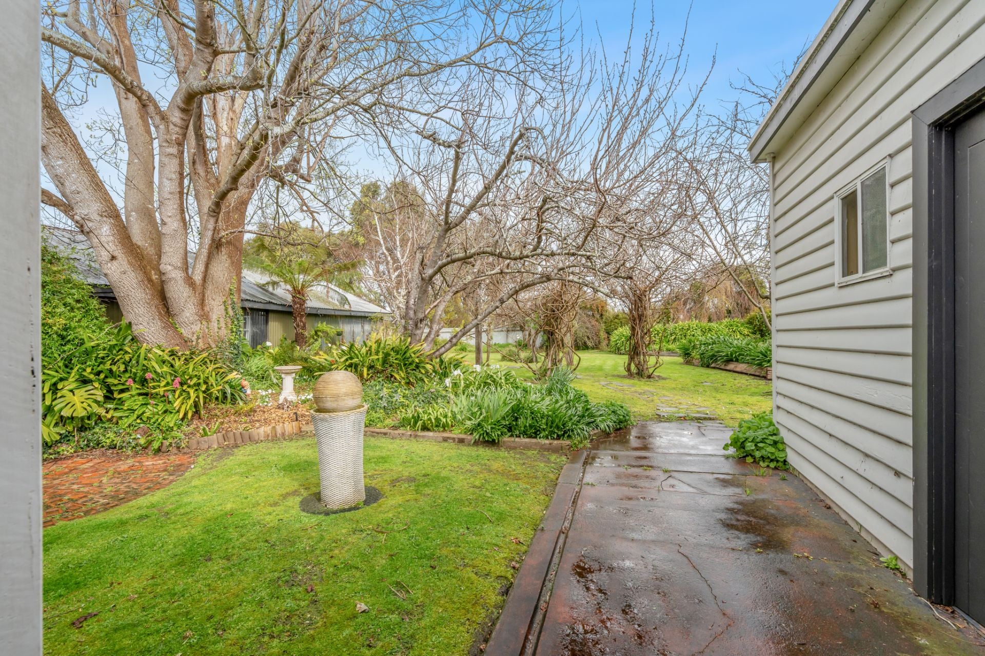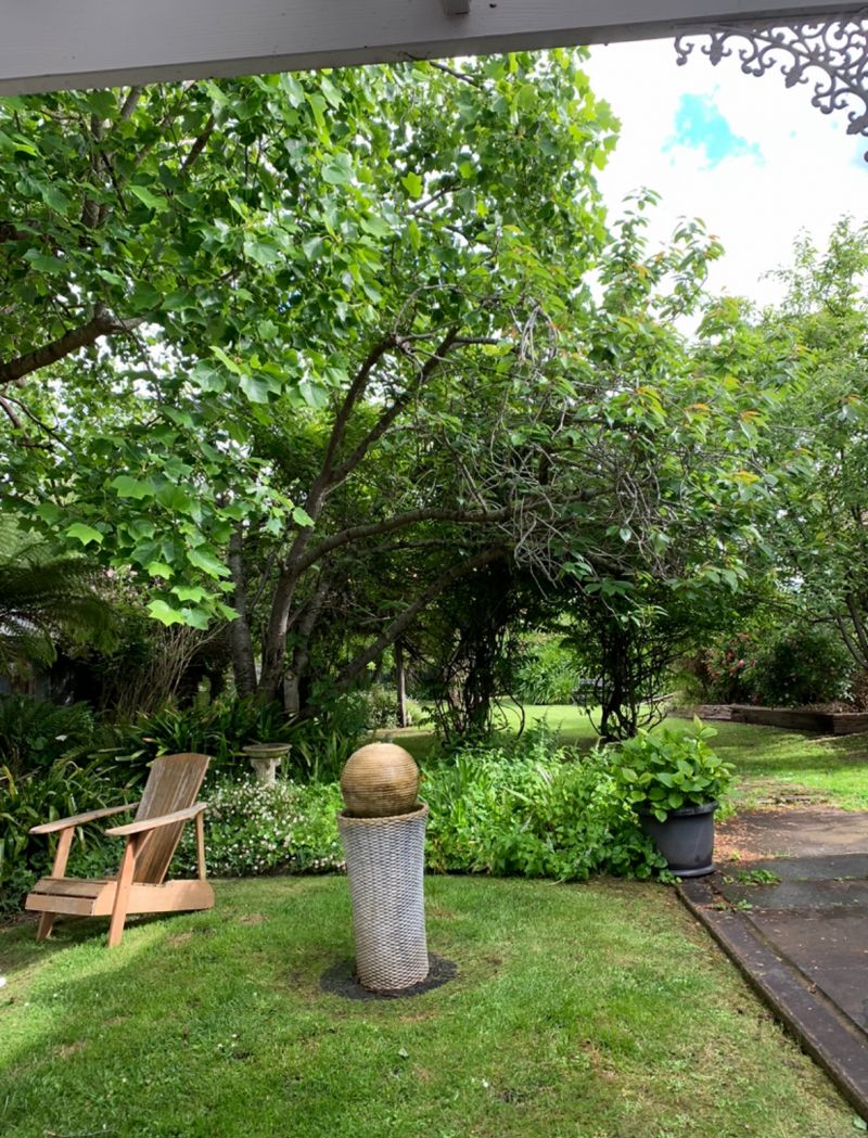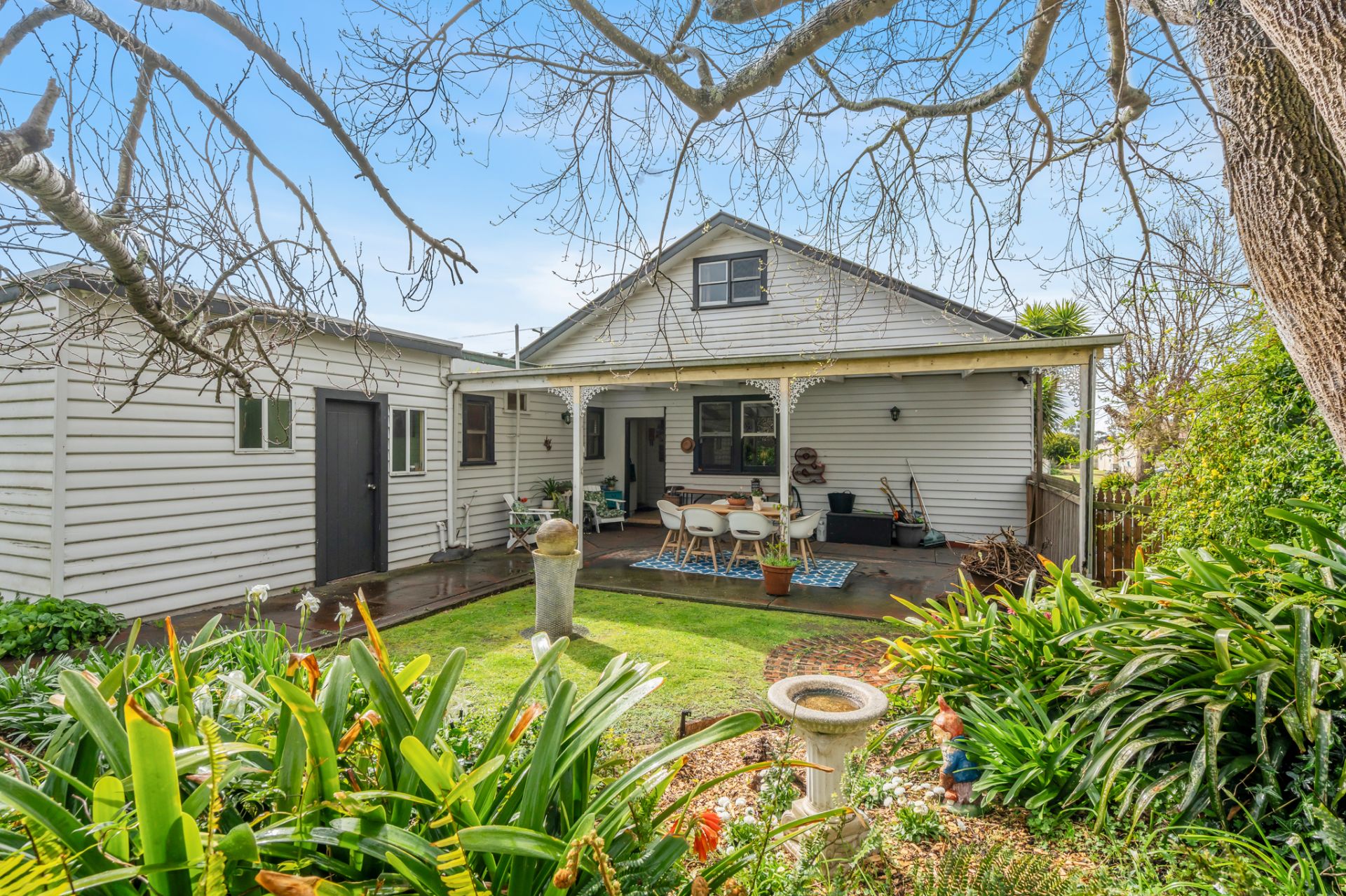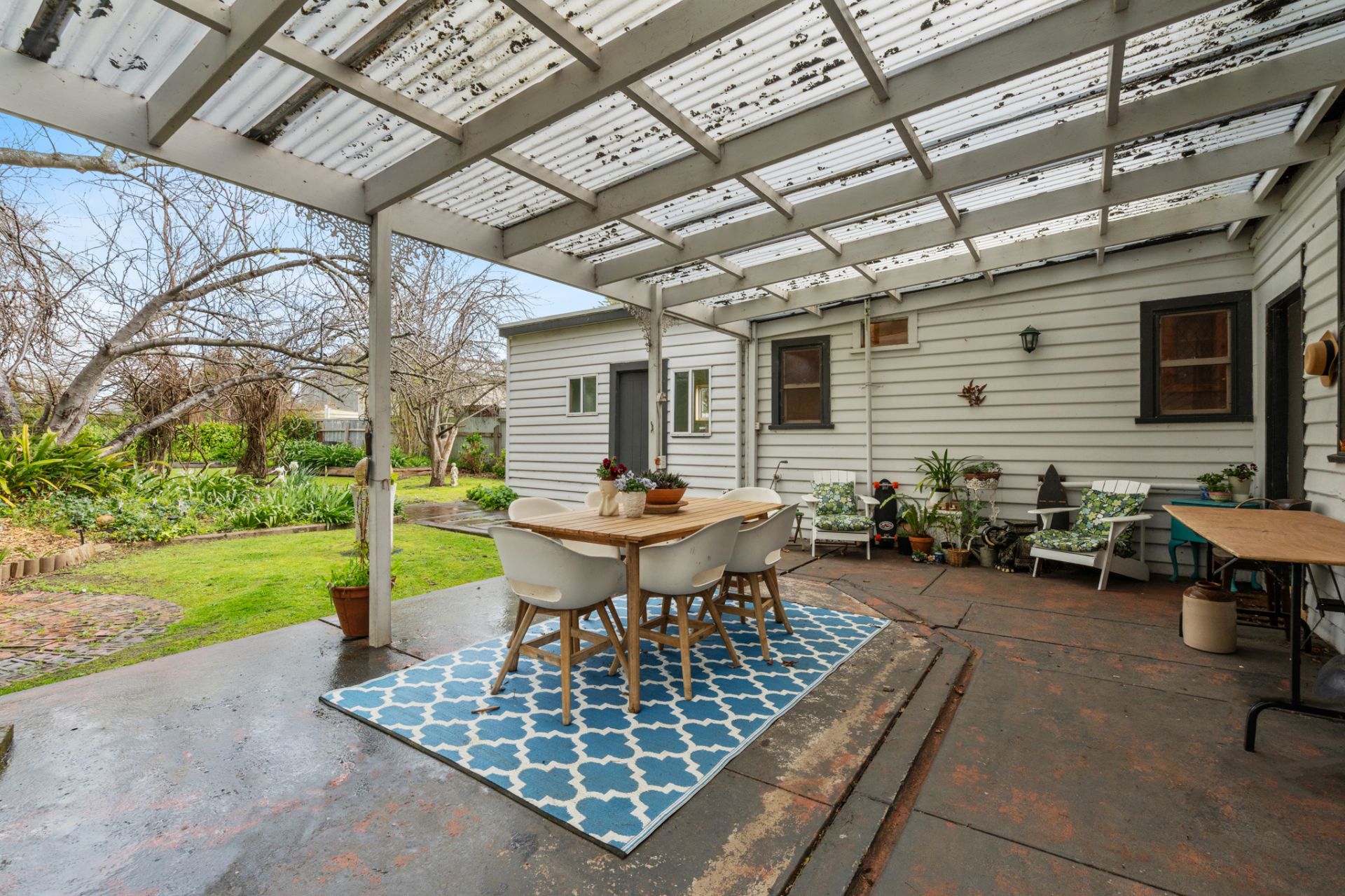 Step outside to a spacious alfresco area that overlooks the established gardens, an ideal spot for hosting gatherings or enjoying a peaceful morning coffee.