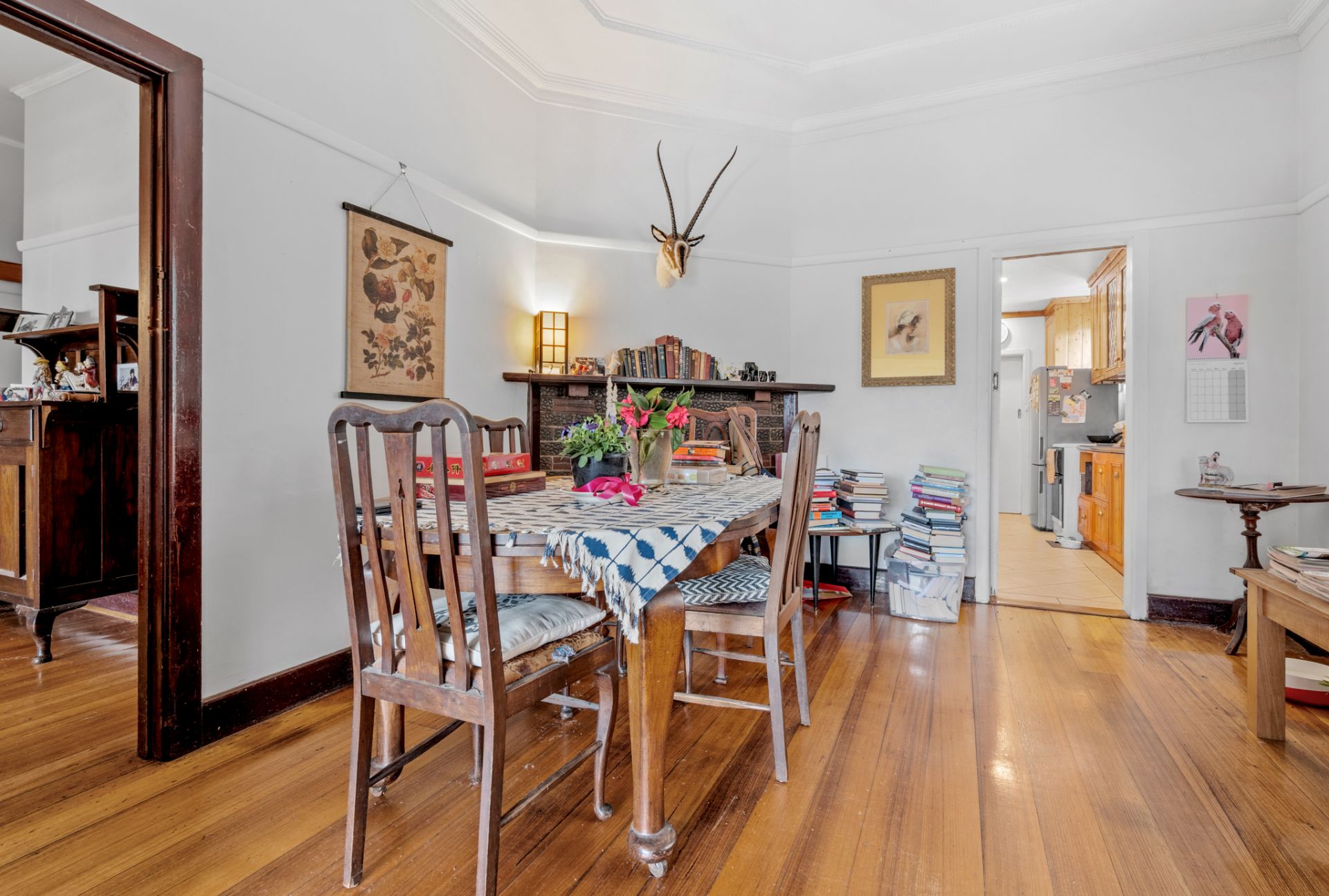 Step inside and be captivated by the home’s original features; soaring decorative ceilings, rich timber window casings, polished hardwood floors, and a classic open fireplace, all adding warmth and elegance.