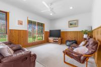 The home's two living zones provide flexibility and comfort. A formal lounge and dining area, complete with a brick fireplace, creates a cozy spot to unwind, while the open-plan kitchen, living, and meals area - equipped with a split system and ceiling fan - offers the perfect hub for family life. Large windows frame the leafy front yard, so you can watch kids or pets play while enjoying the warmth of the home. A private deck off the dining area invites relaxed entertaining.