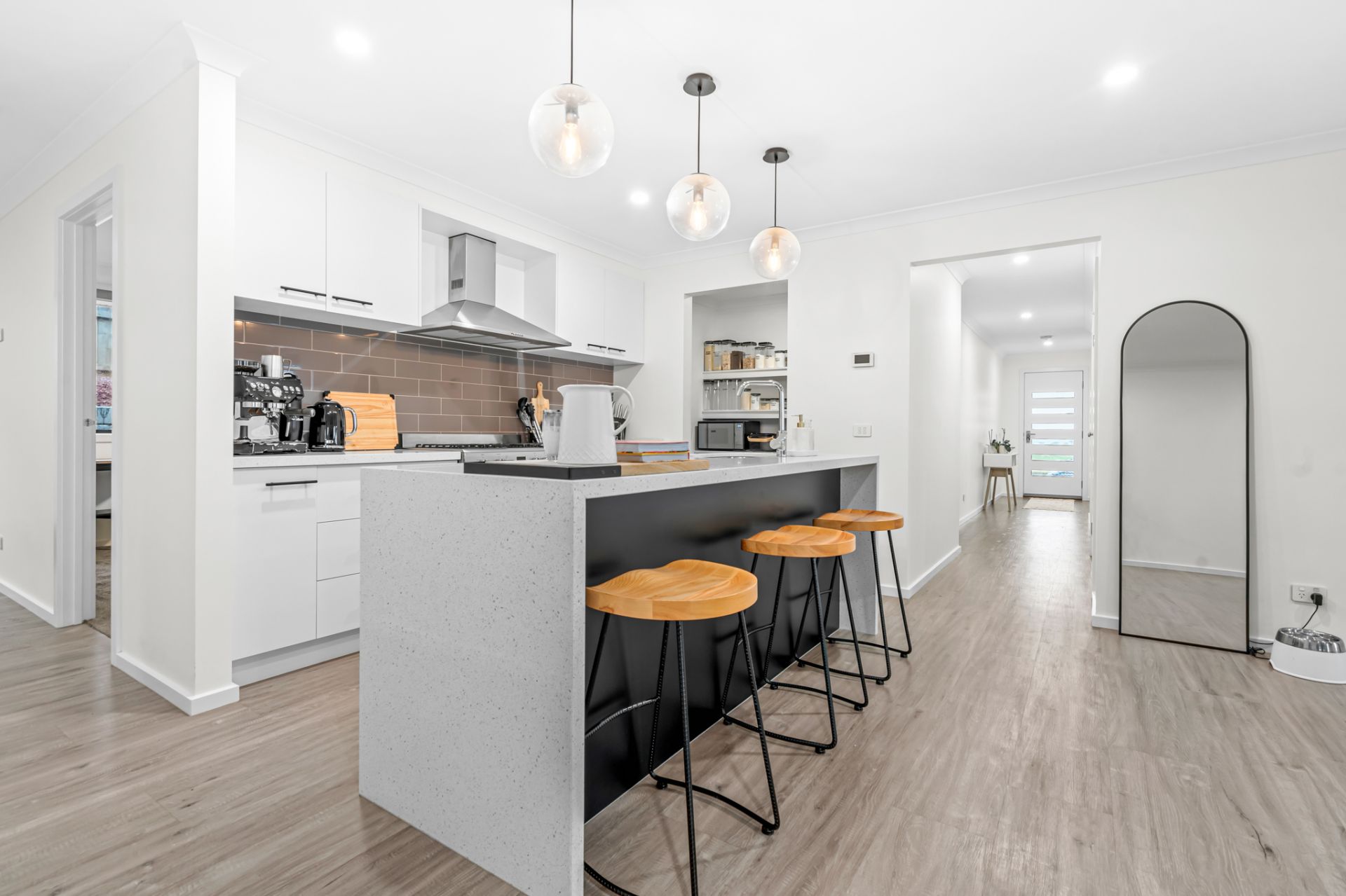 The separate main bedroom is a retreat unto itself, complete with a walk-in robe and ensuite with an oversized shower. Three additional bedrooms reside in a separate wing, serviced by a well-appointed family bathroom featuring a bath and shower.