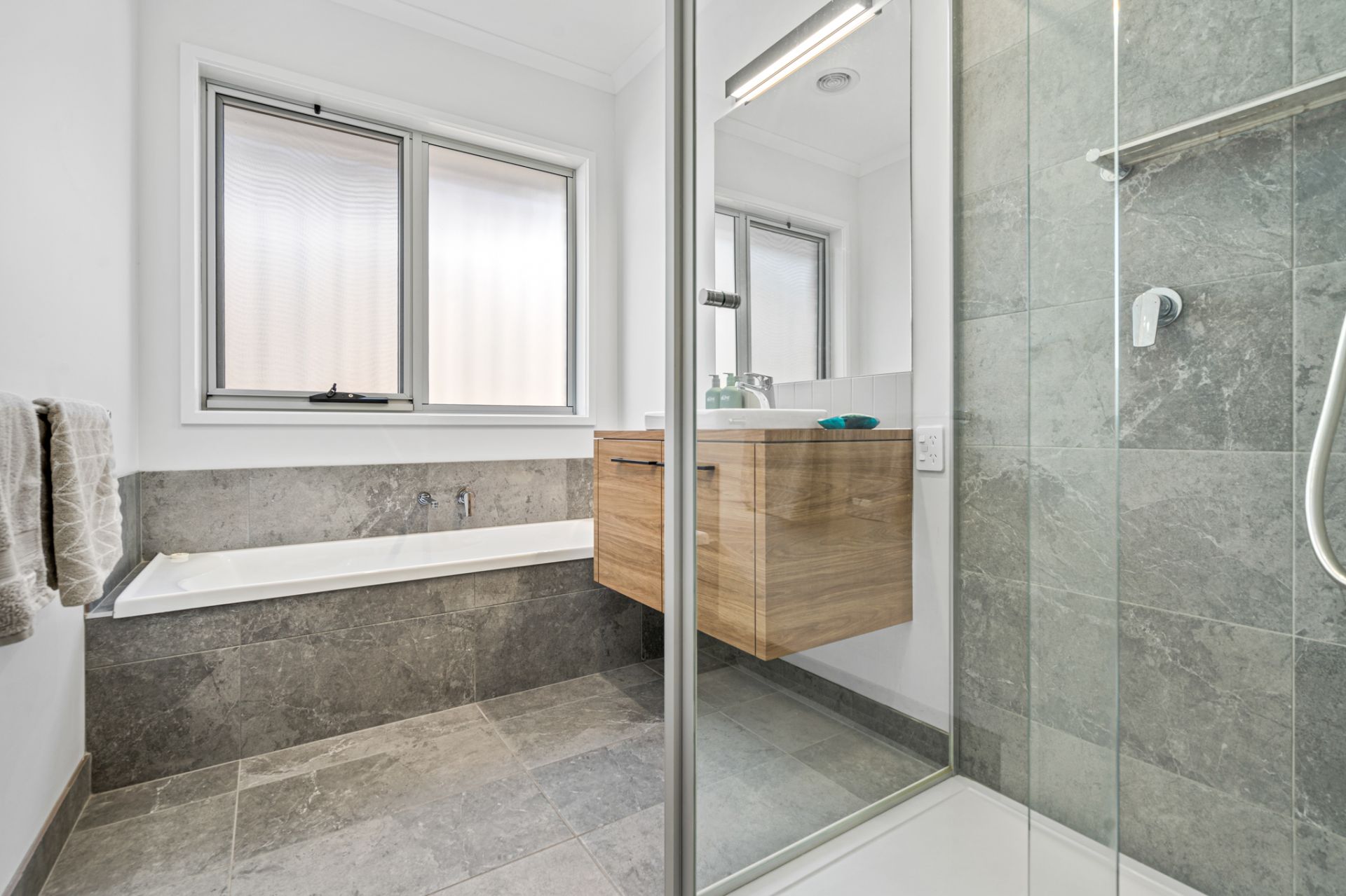 The master-suite is perfectly portioned with a generous W-I-R and luxurious ensuite featuring shower, vanity and toilet. Bedrooms two and three are well balanced, both with B-I-R. The main bathroom includes a shower, vanity and bath, whilst a separate toilet makes this home not only stylish but practical.