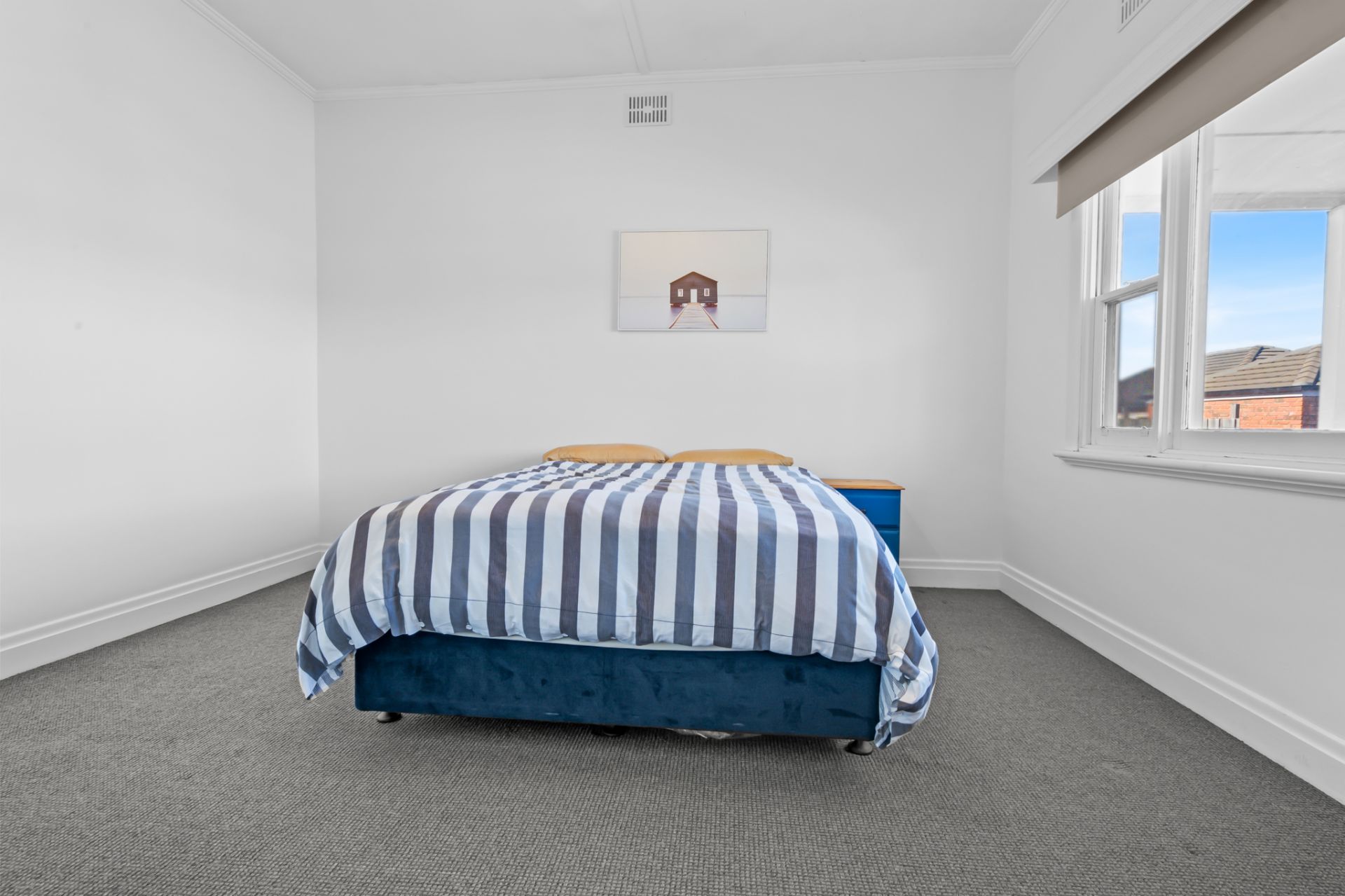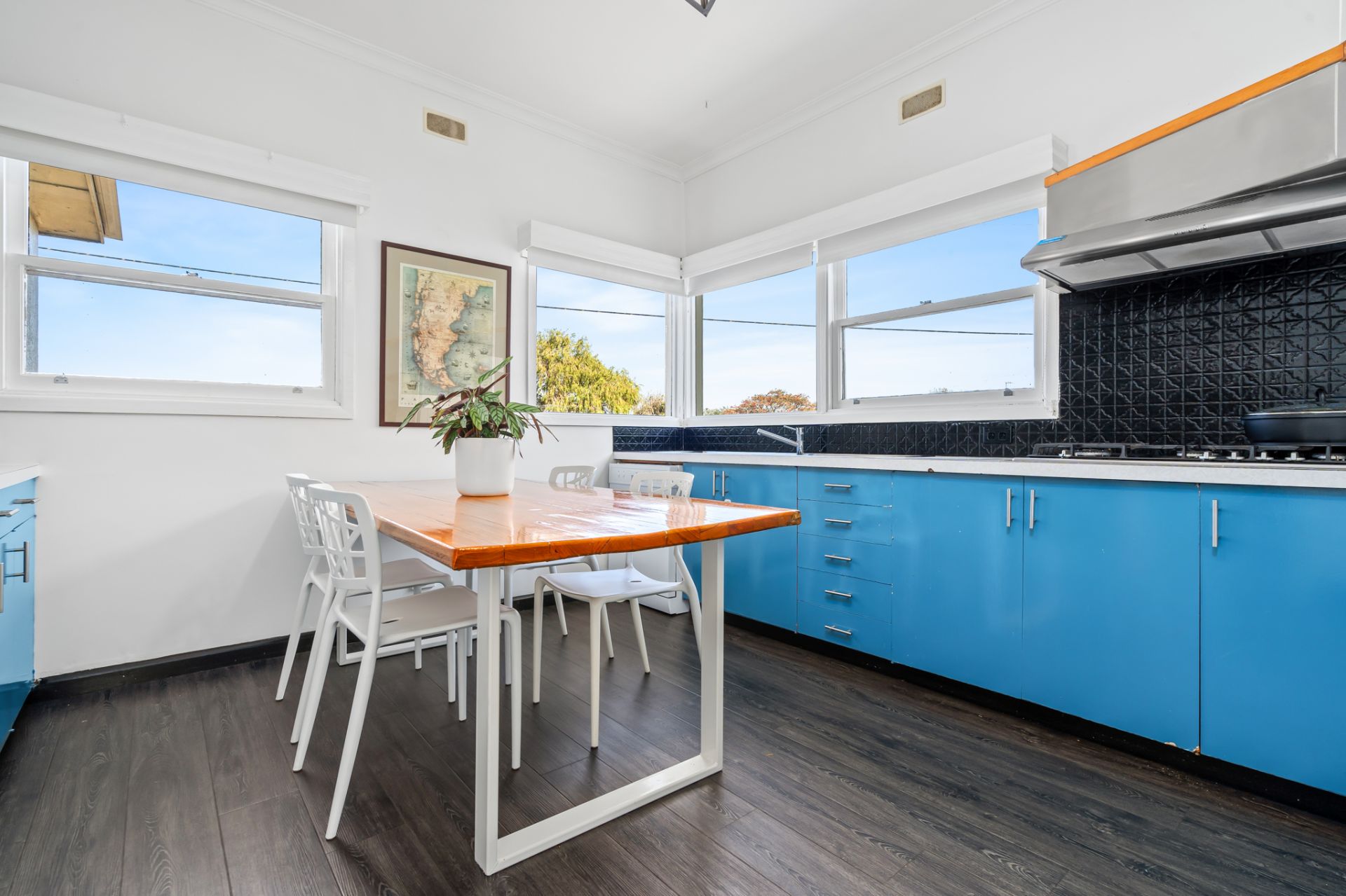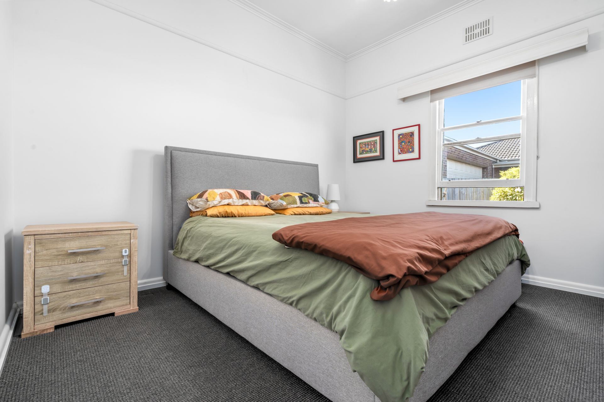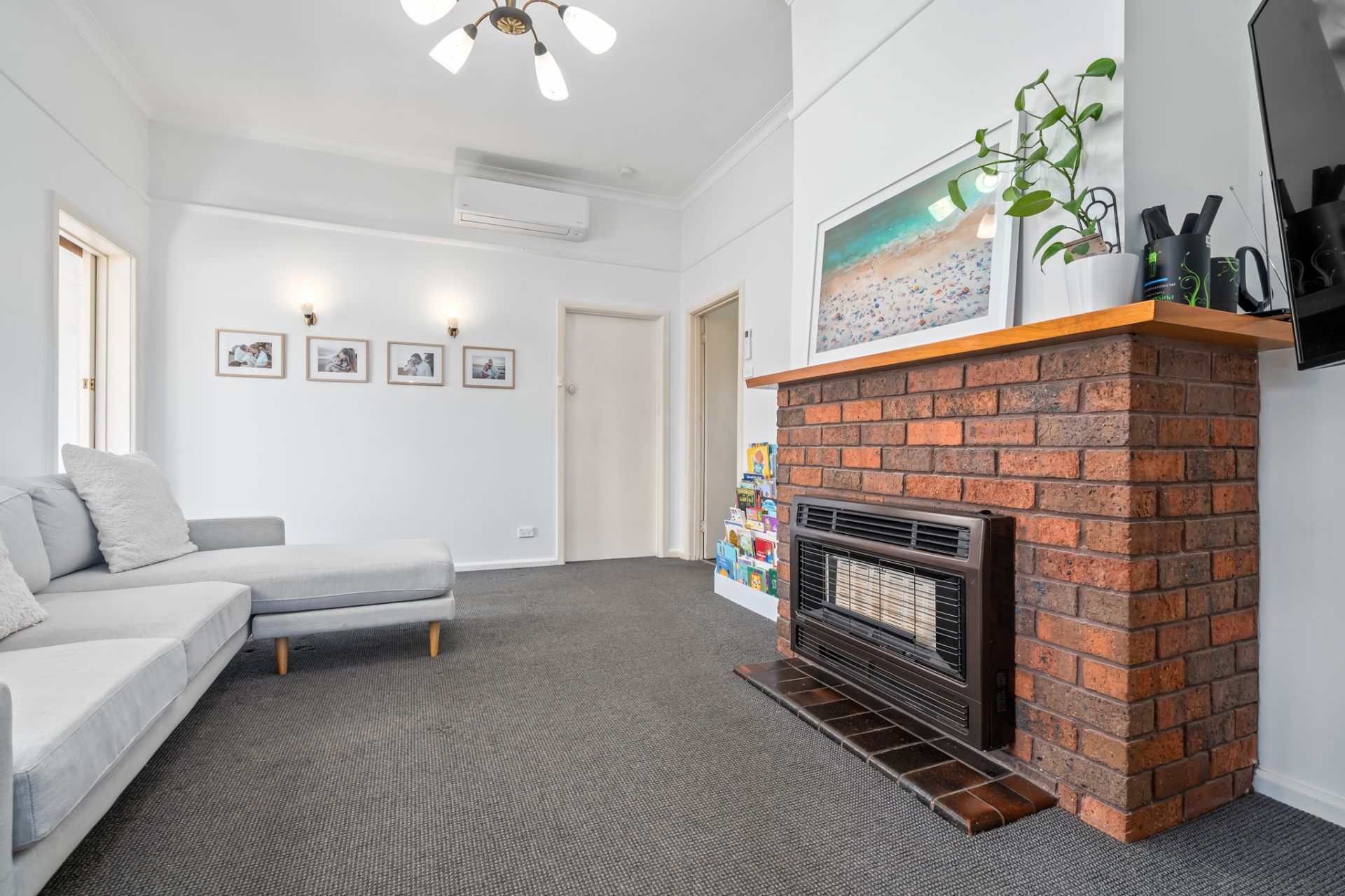 Step inside and be welcomed by mid-century charm, featuring high ceilings, decorative cornices, and generously sized bedrooms with large windows, and blinds. One of the bedrooms has built in wardrobes. The lounge offers comfort year-round with a gas heater and split system, while a north-facing sunroom provides the perfect spot to relax and unwind.