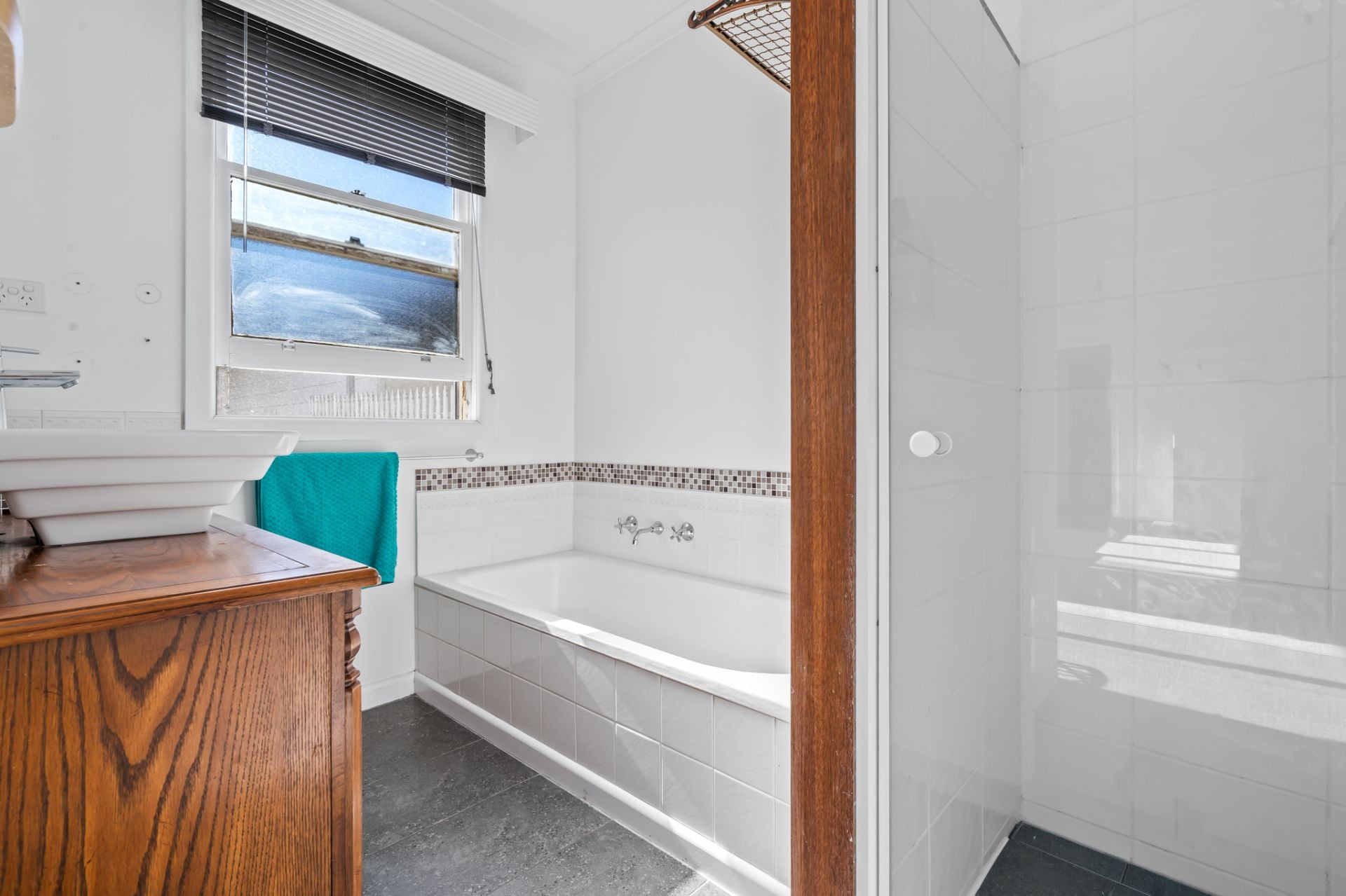 The heart of the home is a spacious kitchen and dining area, equipped with a brand new dishwasher, gas cooktop, and ample storage. A central bathroom services the home, complete with a shower, bath, single vanity, and separate toilet for added convenience.