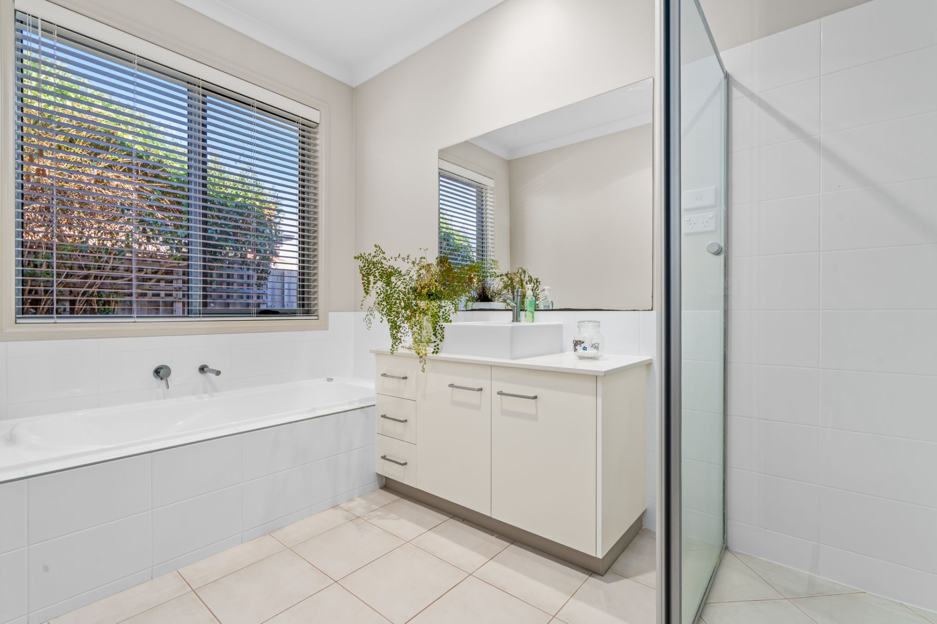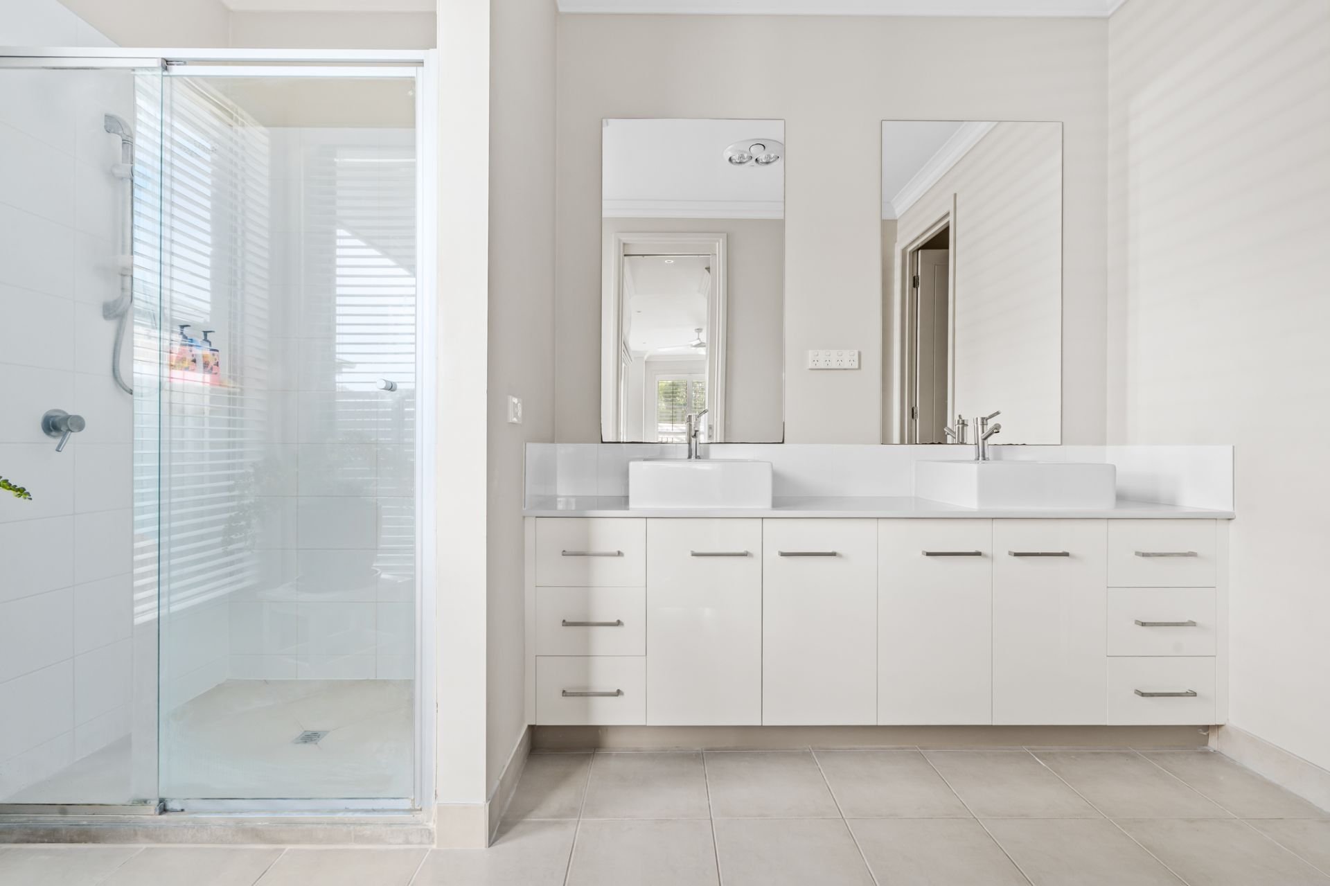 At the front of the home, the master bedroom suite has been designed to feel like your own private retreat. With plantation shutters, a ceiling fan, and generous proportions, it's a space that invites relaxation. The luxurious ensuite includes a his-and-hers vanity, sleek modern finishes, and an expansive walk-in wardrobe to meet all your storage needs. Adding to the sense of privacy is your own patio, accessed directly from the master; perfect for enjoying a morning coffee or simply taking in a moment of peace and quiet.